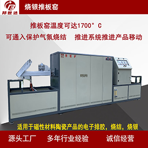 把燒結(jié)產(chǎn)品直接或間接放在耐高溫、耐磨擦的推板上,由推進(jìn)系統(tǒng)按照產(chǎn)品的工藝要求對(duì)放置在推板上產(chǎn)品進(jìn)行移動(dòng),在爐膛中完成產(chǎn)品的燒結(jié)過(guò)程。